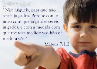 Agora, julga-se o outro sem a menor constatação de coisa alguma. Simplesmente, as pessoas acham que... E destilam juízos, apontam o dedo, condenam, ofendem, perseguem, afirmam o que não sabem, amaldiçoam o próximo. Esse é um problema sério demais. Quem é da luz, não julga. Quem na luz anda, dá um passo pra traz antes de desferir algo negativo sobre alguém. Analisa fria e inteligentemente a situação e se coloca dentro dela se for o caso (se for algo pessoal). Mas se coloca com justiça, firmeza e sabedoria. Julgar, afirmar o que não sabe, deduzir sem provas e com isso classificar o outro ou situações sobre as quais não se tem o domínio é na verdade lançar juízo e negatividade sobre a própria vida.
